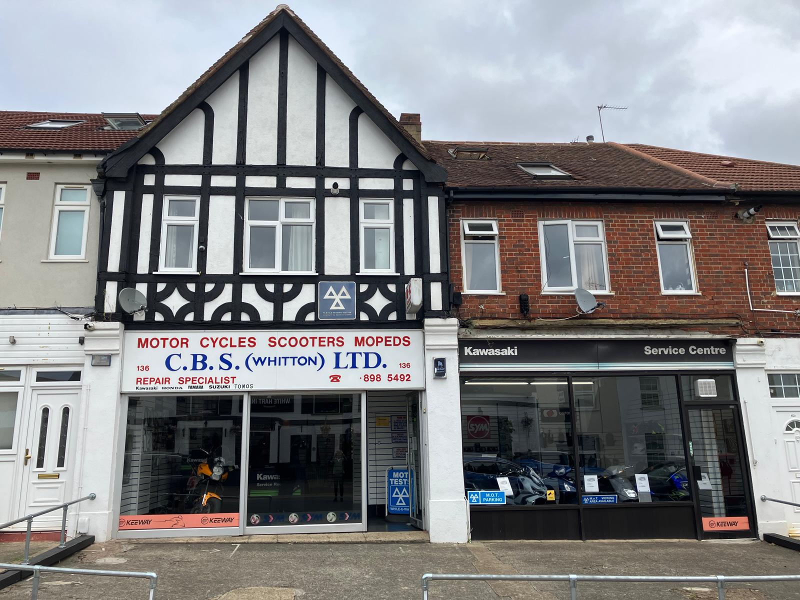 For sale for the first time in 60 years. Currently used as motorcycle sales and repairs, mixed use site commercial ground floor comprising two adjoining showrooms, rear motorcycle mot bay, workshops & stores (extending to some 193 M2) and hardstanding, with the benefit of A single, one-bedroom apartment (loft conversion available under pd) over 136 kneller road only, (134a sold off on a long lease.)